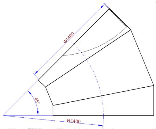 6)放出咬口的量,和板厚处理.弯头下料必须知道弯曲半径,厚度、几节.如下图: